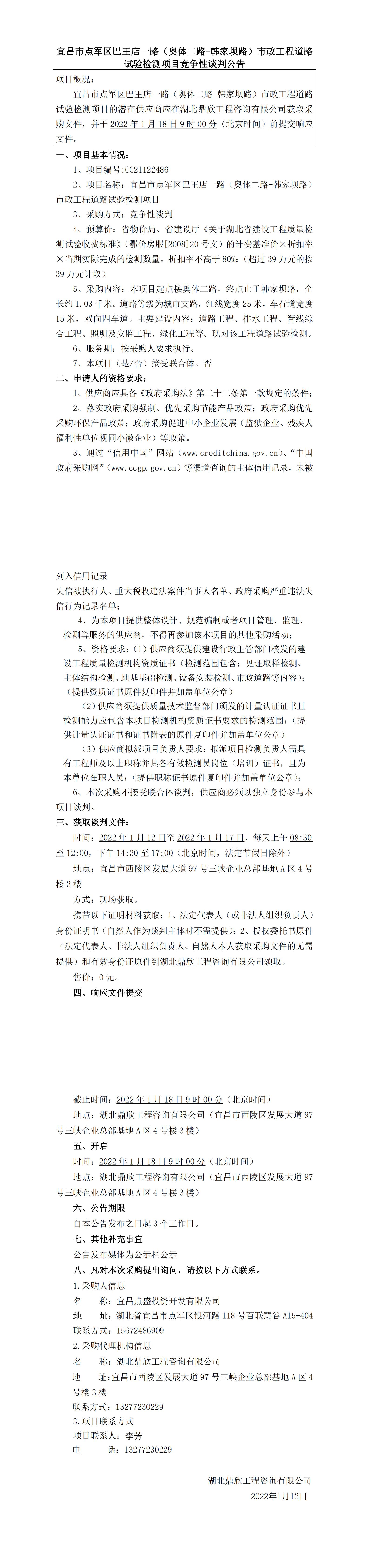 宜昌市點(diǎn)軍區(qū)巴王店一路(奧體二路-韓家壩路)市政工程道路試驗(yàn)檢測(cè)項(xiàng)目競(jìng)爭(zhēng)性談判公告