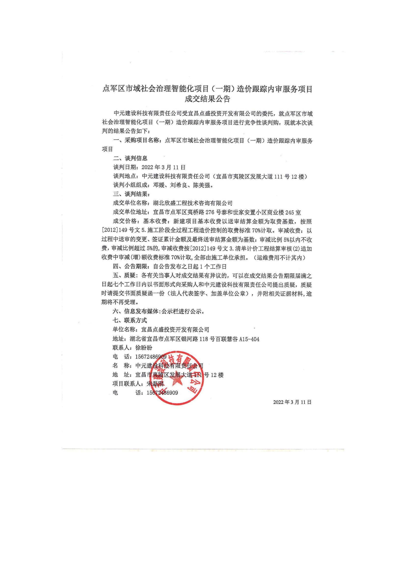 點(diǎn)軍區(qū)市域社會治理智能化項目(一期)造價跟蹤內(nèi)審服務(wù)項目成交公告