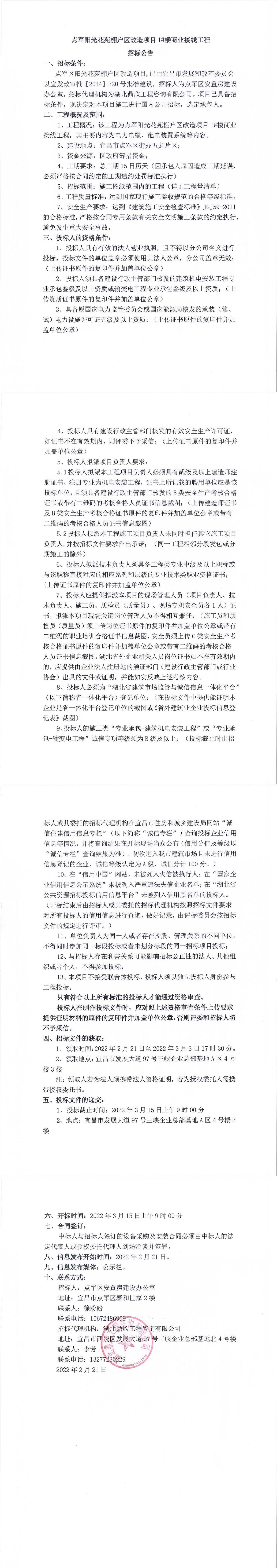 點(diǎn)軍陽(yáng)光花苑棚戶區(qū)改造項(xiàng)目1#樓商業(yè)接線工程招標(biāo)公告