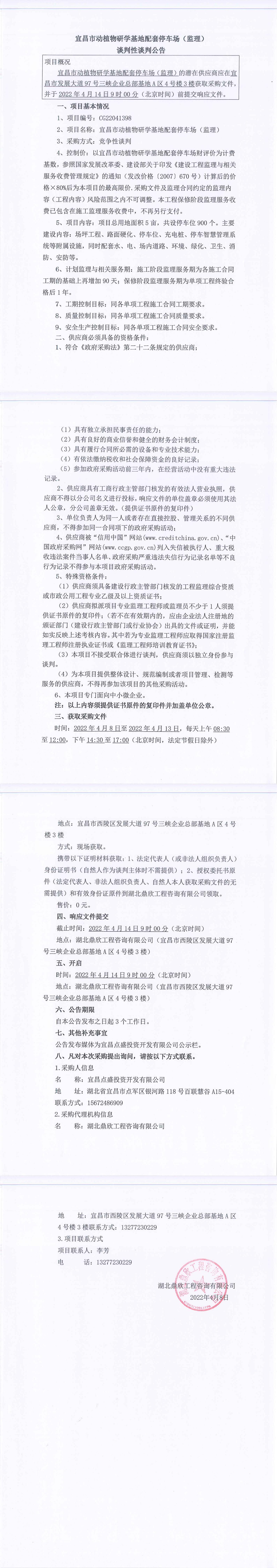 宜昌市動植物研學基地配套停車場監(jiān)理談判公告