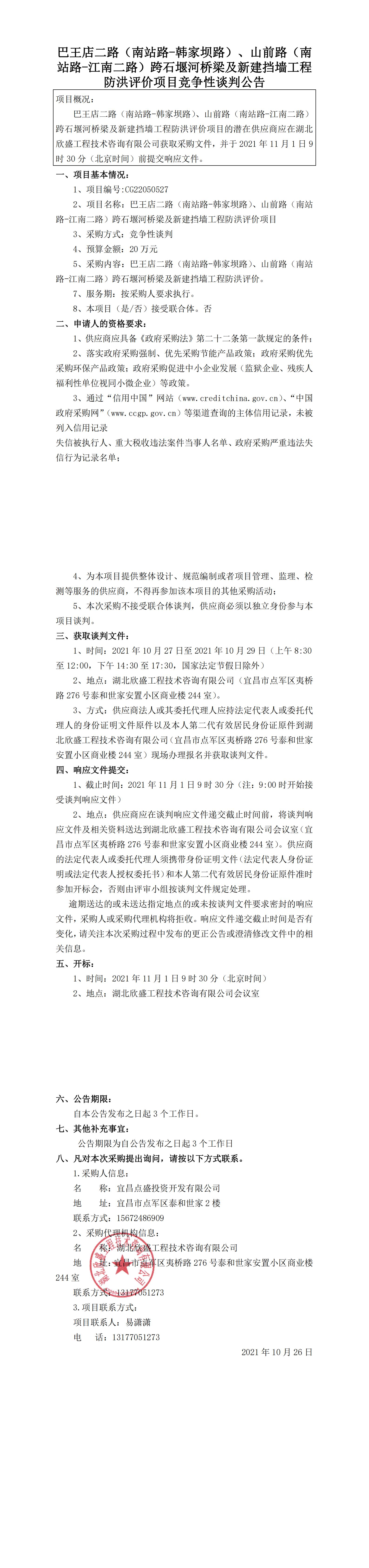 巴王店二路(南站路-韓家壩路)、山前路(南站路-江南二路)跨石堰河橋梁及新建擋墻工程防洪評價項(xiàng)目談判公告