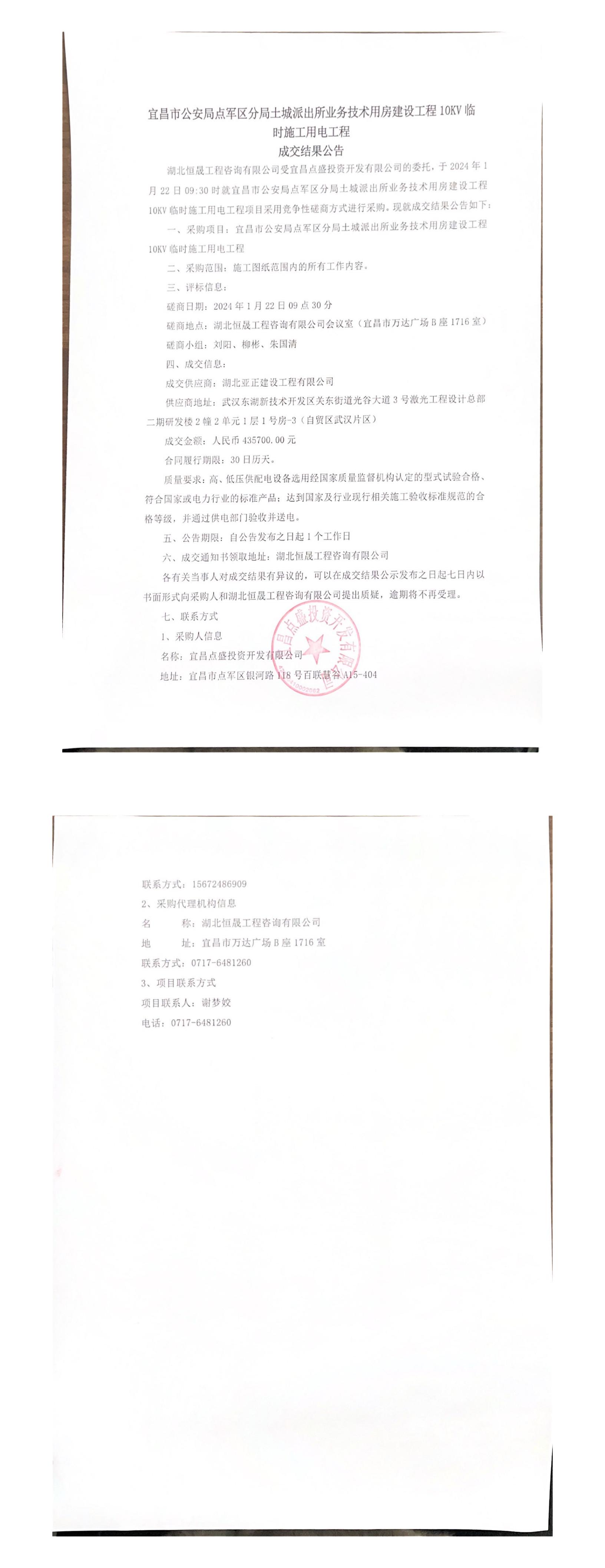 土城派出所10KV施工用電成交結(jié)果公告