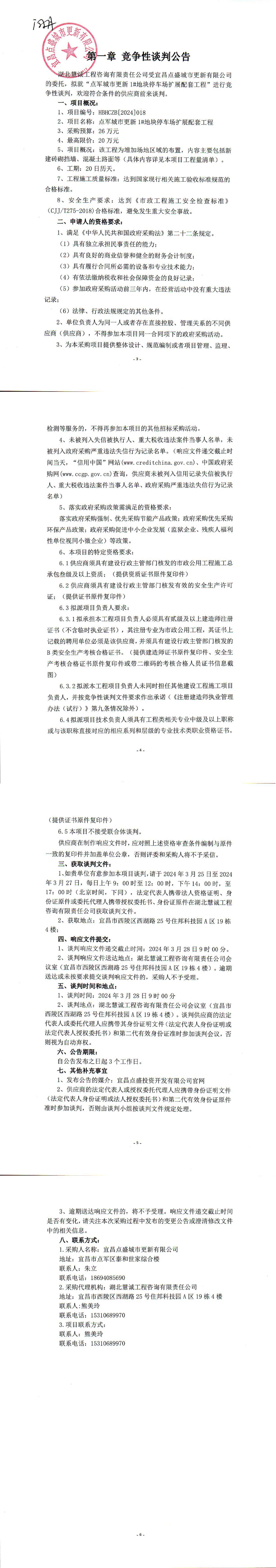 點(diǎn)軍城市更新1#地塊停車場(chǎng)擴(kuò)展配套工程競(jìng)爭(zhēng)性談判公告