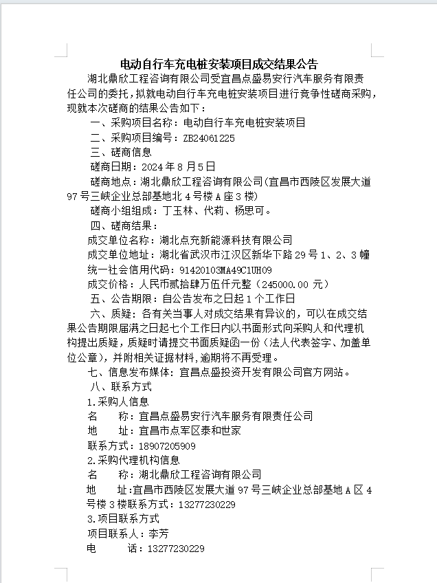 電動自行車充電樁安裝項目成交結果公告