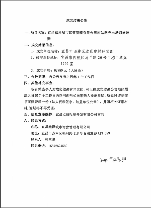 南站路棄土場鋼材采購項目成交公告
