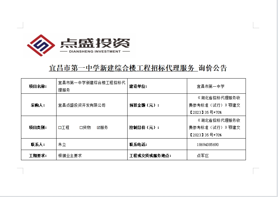宜昌市第一中學(xué)新建綜合樓工程招標(biāo)代理服務(wù)詢(xún)價(jià)公告