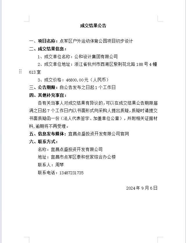 點(diǎn)軍區(qū)戶外運(yùn)動(dòng)體育公園項(xiàng)目初步設(shè)計(jì)成交公告