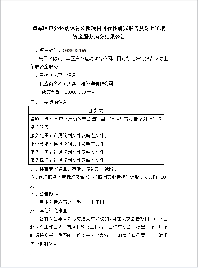 點(diǎn)軍區(qū)戶外運(yùn)動(dòng)體育公園項(xiàng)目可行性研究報(bào)告及對(duì)上爭(zhēng)取資金服務(wù)成交公告